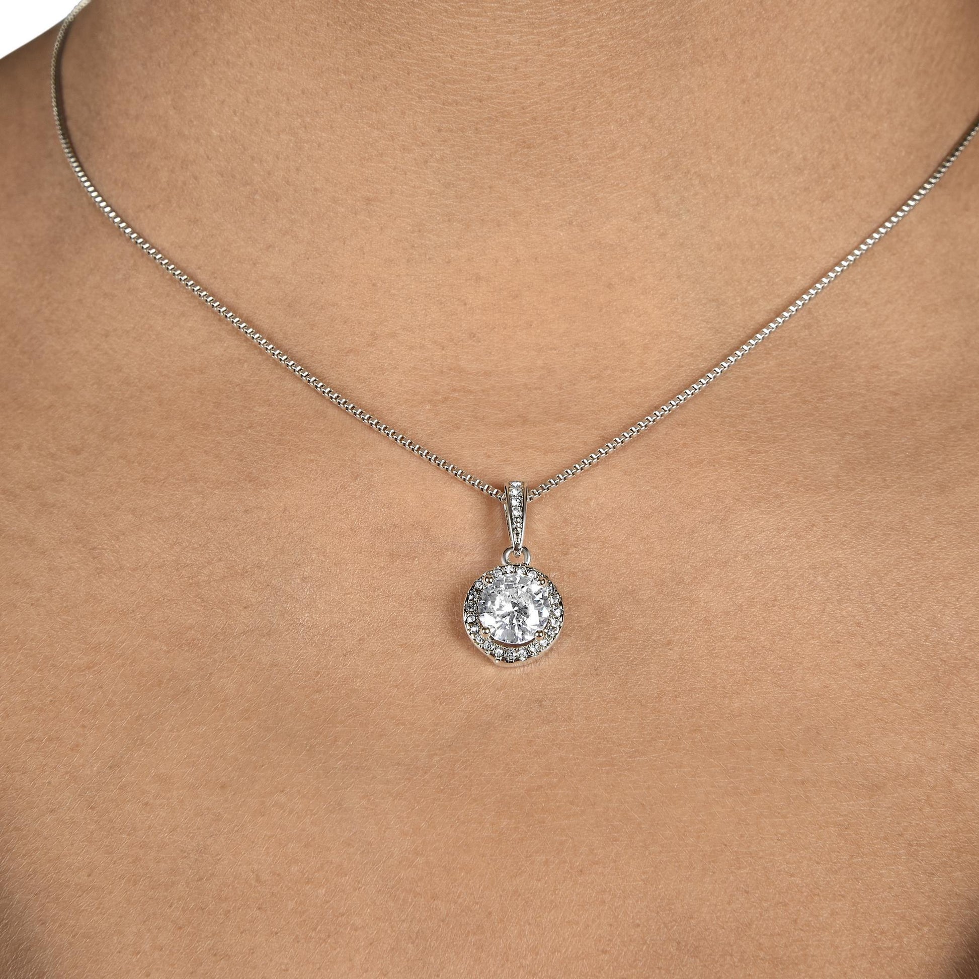 Zirconia Crystal Necklace – Timeless Brilliance in 14k White Gold Look